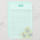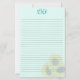 Solros, invändigt skrivpapper, med monogram initialer överst. Anpassa med tre initialer i tealblåkursiv, högst upp på blekens blå grönt papper med linjer.