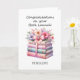Kort för grattisar av personlig för en publicerad författares lansering av bok! Har en vacker stapel av vattenfärgad bokar med vattenfärgblommor och en vit rosa-båge. Kortets framsida kan lätt vara personlig med namn. Detta skulle göra ett unikt nyckelkort för en författare.