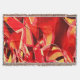 Bild av röda band med röd bakgrund och orange och en effekt som simulerar regn eller rosett band i bran med enhetliga repor som simulerar rörelse eller acceleration.