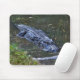 Upplev den tysta kraften i träsket med "Skugga i grunt vatten". Detta slående fotografi visar en amerikansk alligator som lurar i de mörka, grumliga vattnen i en Floridas cypresskärr. Bilden är tagen i ögonhöjd och framhäver de otroliga texturerna på alligatorns fjäll och dess förhistoriska tålamod.
