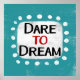 "Dare to Dream" är ett sött inspirerande eller motiverande citat med en vit accentform omgiven av vita texturerade vismpunkter.