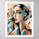 Kubist porträtt med en mystisk kvinna i Picassos ikoniska geometriska stil. Denna slående moderna konst avslöjar feminin skönhet genom vinklade fragment och fördärvande skuggor.