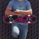 Denna skateboard av hög kvalitet visas med mönster-abstrakt i färg av svart, grått och rosa. Köp som det är eller anpassa det här objektet enligt dina önskemål. Lagrar Image vecteezy.com