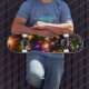 Skateboard visas i ett färgstarkt startgrafiskt tryck. Köp som det är eller anpassa det här objektet enligt dina önskemål.
