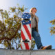 Skateboard visas i ett patriotiskt USA flagga-grafikobjekt. Köp som det är eller anpassa det här objektet enligt dina önskemål. Lagrar-bild