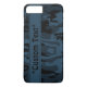 Kamouflage mönster smartphone fodral i mörk blått grått med redigerbar text fält. Anpassa med upp till 15 brev, siffror eller symboler. Tillgänglig för de senaste iPhone- och Galaxy-modellerna.