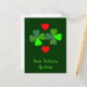 Två digitalt målade schamprockar och två röda hjärtan med ord "Irish Valentine Hälsning".
