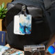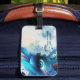 Föreställ dig en fetstilt, fängslande design med blått glam för kvinnors öga med elektrisk rik blå öga-skugga i en pulserande makeup-estetik. Perfekt för att du vill förbättra ditt skönhets- eller makeup-företag. Fyll på penslar även i bilden. En vattenfärgsbakgrund accentuerar den här makeup-bagagetaggen skapar det lätt att fästa på resväskor.