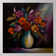 Den här AI-genererade designen har en vas med blommor placerade i ett rum för mörk, där samverkan mellan skuggor och mjukt ljus skapar en moody atmosfär för elegant. Blommornas subtila glöd står i kontrast till de djupa skuggorna runt dem, och lägger till en luft av mystik och sofistikering. Idealisk för moderna utrymmen som omfattar kontrast och djup, ger biet en aning tyst skönhet till vilket rum som helst.