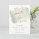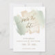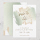 Elegant bröllop Spara datumkortet med vackra penseldrag för grönten i en harmonisk blandning av krämbeige, persiko- och sidnyanser med frasen "Spara datum" i en snygg, modern kalligrafi med handskrift. Det tvättar att dra tillbaka penseldragen. Modern, elegantens minimalistiska stil. Observera: typografi är inte i verklig folie utan tryckt i en gyllene nyans. En del av vår "Sage Grönt Push Strokes Bröllop"-samling.