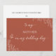 Ät den viktigaste kvinnan i ditt liv med det här vackert designade "Till mitt Mor på min Bröllopsdag"-kortet, som innehåller känsliga masterblommor och mjuka, romantiska toner. Denna innerliga hjärtefråga är det perfekt sättet att uttrycka er tacksamhet, kärlek, och uppskattning till er mamma under en av de mest meningsfulla dagarna i ert liv. På framsidan visas en blommigt- och elegant-typografi, medan baksidan ger utrymme för ett fullständigt anpassade som gör att du kan dina personliga tankar, minnen eller en speciell anteckning som hon kommer att uppskatta för alltid. Det här kortet är ett tidlöst tecken på kärlek som hon aldrig kommer att glömma. Det är en bröllopsdagens gåva, en del av ett ögonblick av redo eller en vacker blandning av känslor och stil.
