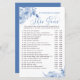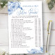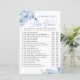 Skuggspel för Bröllop eller Par Shower, personlig med namn i bruden och trimmen. Dusty blue blommigt design med vattenfärgsblommor, blad och elegant kalligrafi. Utformningen har 20 frågor som du gärna kan redigera om du vill.