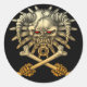 skull cross runt klistermärke