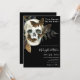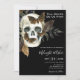 Häpnadsväckande vacker bröllopsinbjudan med Till Död... Gör oss till en del och skalle med fjärilar och ängar på svart bakgrund. Baksidan av inbjudan har rädsla och fjäril. Perfekt för gothic eller Halloween bröllop. Se även våra andra goda bröllop-idéer.