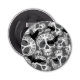 Dekorativ sockerskalle, Dia De Los Muertos Logotyp Inslag med Kråkor, Ravens, Fladdermus monterade sig för att bilda en grå Halloween Vector Design. Original Art Copyright BluedarkArt ChameleonArt.