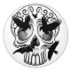 Dekorativ sockerskalle, Dia De Los Muertos Logotyp Inslag med Kråkor, Ravens, Fladdermus monterade sig för att bilda en grå Halloween Vector Design. Original Art Copyright BluedarkArt ChameleonArt.
