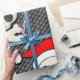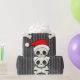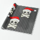 Skull och korsben på en bakgrund av svart och vitt rand. Tomten gör den festlig! Har en goth vibe. Unik papprare förpackning för dina unika gåvor! Från Skarribabydesign.