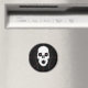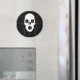 Glowing skalle på en svart bakgrund med taggtrådscirkel.