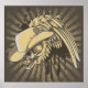 Skull med hatt och vinge på anpassningsbar poster, med en coola skalle med hatt och vinge i smutsig gult och taupe på grym bakgrund.