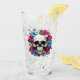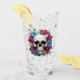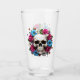 Ett mänskligt skalle omgivet av rött, vitt, och blåa blommor är ett underbart och vackert dricksglas av Goth. Perfekt för Halloween och varannan dag.