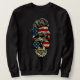 Skull Messy Bun Leopard Skriv ut American Flagga M Lång Ärmad Tröja