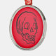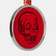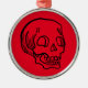 Metall jul Ornament med skalle. Om du vill göra din Julgran lite mer girig eller fasansfull, så är det en söt liten runda prydnadsföremål som innehåller en skalle mot en röd (eller röd) bakgrund från ett kristet blod. Ge är den här skalljulprydnaden som en helgdag till alla som kärlek döskallar, skräck, skämt sak, spöken etc.