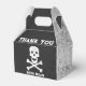 Säg "tack" i scoky stil! Den här Halloween-födelsedagskalan har en fetstilt skalle- och korsbenskonstruktion med mistig grått-bakgrund och anpassade-text. Perfekt för fyllning med godis, leksak eller party vid pirat eller skelettkallat firande.