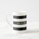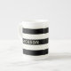 En söt skalle och korsben på svart och gräddstripad benkaffe mugg med china med plats för ditt namn. Lämpligt för hela pirater! Ställ in segel för underbart kaffe (eller te)