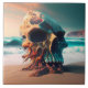 A large skull sits on top of the sand in the ocean, in the style of surreal 3d landscapes, intense color palette, redshift, vibrant illustrations, photo-realistic landscapes, textural explorations