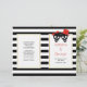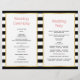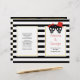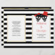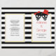 Skullparet med en röd båge, bruden och den röda hatten på brudgummen, och det svarta och vita rand moderna röda Halloween-utspelade bröllop-ceremonin och party-programmet. Det finns vitt ramar med guld-kontur med texten.