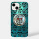 SKULL RIDERS BLACK TEAL BLUE DAMASK BLOMMIGT