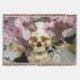 Skal i rosa blommor och lätt blad över svart bakgrund.