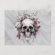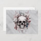 Skull White Flowers Greenery Grått Halloween Helg Vykort