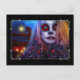 Kvinnor med skallmakeup omgivna av svart holly med jack- o- lantern i bakgrunden.