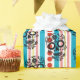 Den här färgstarka mexikanska sockerskallen är perfekt för din Día de Muertos / Day of the dead firande. Med en färgstark blå och röd randig bakgrund och punktbakgrund med en svart sockerskalle.