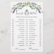 Skulle hon hellre Möhippa spela. Denna utformning illustrerar eucalyptus foliage och lila lavender-blommor i vattenfärgen stil. Överst på kortet - silver-effektkonfetti. Texten "Skulle hon hellre" är skriven i ett skriptteckensnitt.