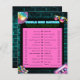 Lägg till lite roligt och interaktion till din 90-talskade födelsedagsfest med Neon Vibes: 90-talets Disco Birthday "Skulle hon hellre spela". Lakan har en rad val av roligt för gäster för att gissa vad födelsedagsflickan skulle föredra. Med ljusstark neon färg, retrografik och en coola disco vibe, är det här spelet ett tillägg till 90-temade firande. Spelet är anpassade, vilket gör att du kan ersätta valen med dina egna val för att göra spelet ännu mer personligt och underhållande. Koppla ihop det med våra motsvarande inbjudningar, servetter och underlägg för ett helt samordnat party. Om du vill ha fler matchande produkter kan du checka ut samlingen med fullt.