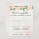 Det här spelkortet för baby shower-firande har vackra mjuka pastella vattenfärgrosor och peonior i nyanserade rosa och persikofärgade toner med frodiga gröna botaniska blad och eukalyptus.