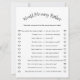 Lägg till roligt och skratt i firande med det här skulle Mamma snarare minimalistiskt babyduschspel. Det här utskrivbara kortet har en ren och modern utformning och är en perfekt för att hålla gästerna mottagna samtidigt som man firar mamma till att bli medlem. Den är lätt att spela och stilfullt designad och kompletterar alla babyduschteman, från klassiskt till contemporary. Det här spelet är ett viktigt bidrag för att skapa glatta ögonblick med familj och vänner.