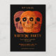 Skullhuvud lustigt Gothic orange Black pop art stil Halloween Födelsedagsfest RIP till hans 20-sekundersinbjudningar. Roligt, läskigt, 30års födelsedag. Tre döskallar är utformade med googly ögon. Trendig, unikt, modernt inspirerat. Upphovsrätt Marg Seregelyi Fotography.
