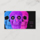 Skullhuvud Lustigt gotiskt färgstarkt nyblått svart popkonst av rosa lila. Tre döskallar är utformade med googly öga. Impress dina klienter med de här affärskorten för professionell av kreativ-tatuering. Trendig, coola, unik, skrämmande, modern inspirerad. Upphovsrätt Marg Seregelyi Fotography.