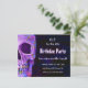 Gothic skallhead-vintagen lila Halloween-födelsedagsfest RIP till hans 20-sekundersinbjudan, platta kort. Roligt, bortskämd 30års födelsedag. Upphovsrätt Marg Seregelyi Fotography.