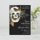 Ohyggligt vacker inbjudan från bröllop spara datum med Til Död... Gör oss till en del och skalle med fjärilar och ängar mot svart bakgrund. Perfekt för gothic eller Halloween bröllop. Se även våra andra gotiska bröllop-alternativ.