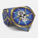 Ondskalle med pentagram sätts framför kompass i guld med blå bakgrund.