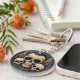 Intrikatisk konstnärlig bild med tre mänskliga döskallar. Huvudskallen är accentuerad, omgiven av abstrakt mönster för prydnadsändamål i ett monokromt tema och skapar en känsla av mystik och gotisk elegans.