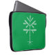 Neoprenskum laptop sleeve i Simon Sten grönt med ett vitt skevruppsfall på vardera sidan. Den levereras i storlekar på 10, 13 och 15 tum för bärbara datorer med **THIN**.