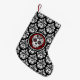 En söt julklapp med en svart, vit och röd dag eller dödens sockerskalle tryckt på båda sidor. Bakgrunden är svart och vit damm. Det skulle vara underbart för en tematisk helgdag.