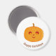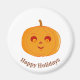 Sött pumpa-ansikte på vit bakgrund rund magnet. Texten kan anpassas.