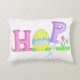 Den roliga påsken kudder! "Hoppa" skriftligt i en hand plockadedesign med en påskägg och vår blommor bland breven.
