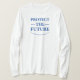 En t-shirt-sport som säger "Skydda framtiden: Håll dig med demokratin" för att uttrycka en önskan om en framtid där frihet garanteras. Du kan anpassa texten innehåll och färg till din smak.